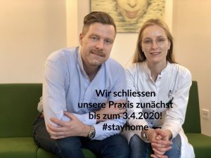 Liebe Patientinnen und Patienten, nach langer Überlegung und Berücksichtigung der aktuellen Situation mit einer hohen Ansteckungsgefahr, haben wir uns entschlossen unsere Praxis zunächst bis zum 3.4.2020 zu schließen. Die aktuelle Situation ist ernst und die Übertragungswege des Virus müssen unterbrochen werden. Daher müssen wir aus unserem medizinischen Verständnis heraus alle nicht notwendigen Kontakte minimieren. Dies gelingt nur, wenn wir zu Hause bleiben. Da wir in unserer Praxis für plastische und ästhetische Chirurgie fast ausschließlich hoch elektive Eingriffe und Behandlungen durchführen, haben wir alle Eingriffe und Operationen der nächsten 14 Tage verschoben, da wir im Falle von weiteren Einschränkungen eine angemessene postoperative Betreuung nicht mehr garantieren können. Wir sind weiterhin telefonisch zu erreichen und in Notfällen greifbar. Zudem bieten wir die Möglichkeit der Videosprechstunde an. Sollten Sie von dieser Möglichkeit Gebrauch machen wollen, vermerken Sie dies bitte, wenn Sie einen online-Termin abschliessen.